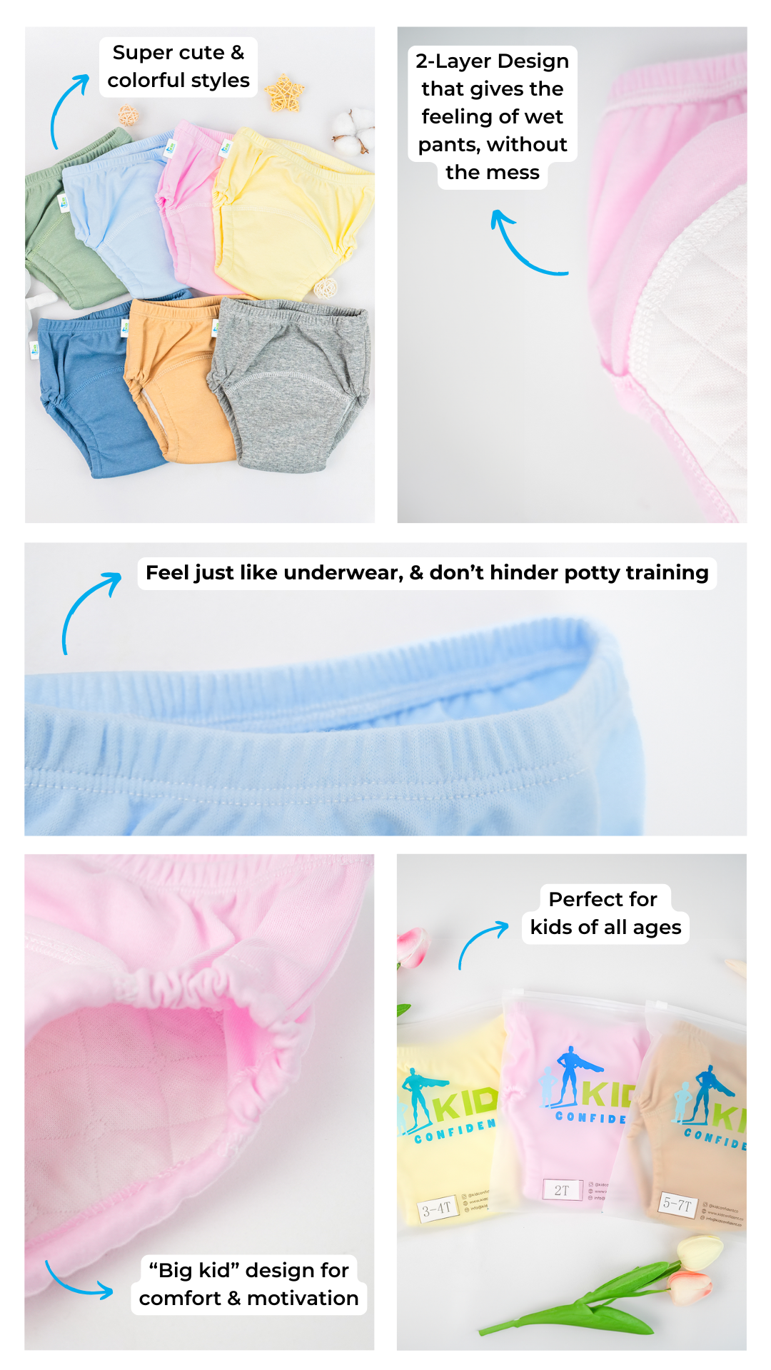 Click the button below to head over to the Kid Confident website now and see for yourself how these intelligently designed training pants can make your gentle potty training journey a success!