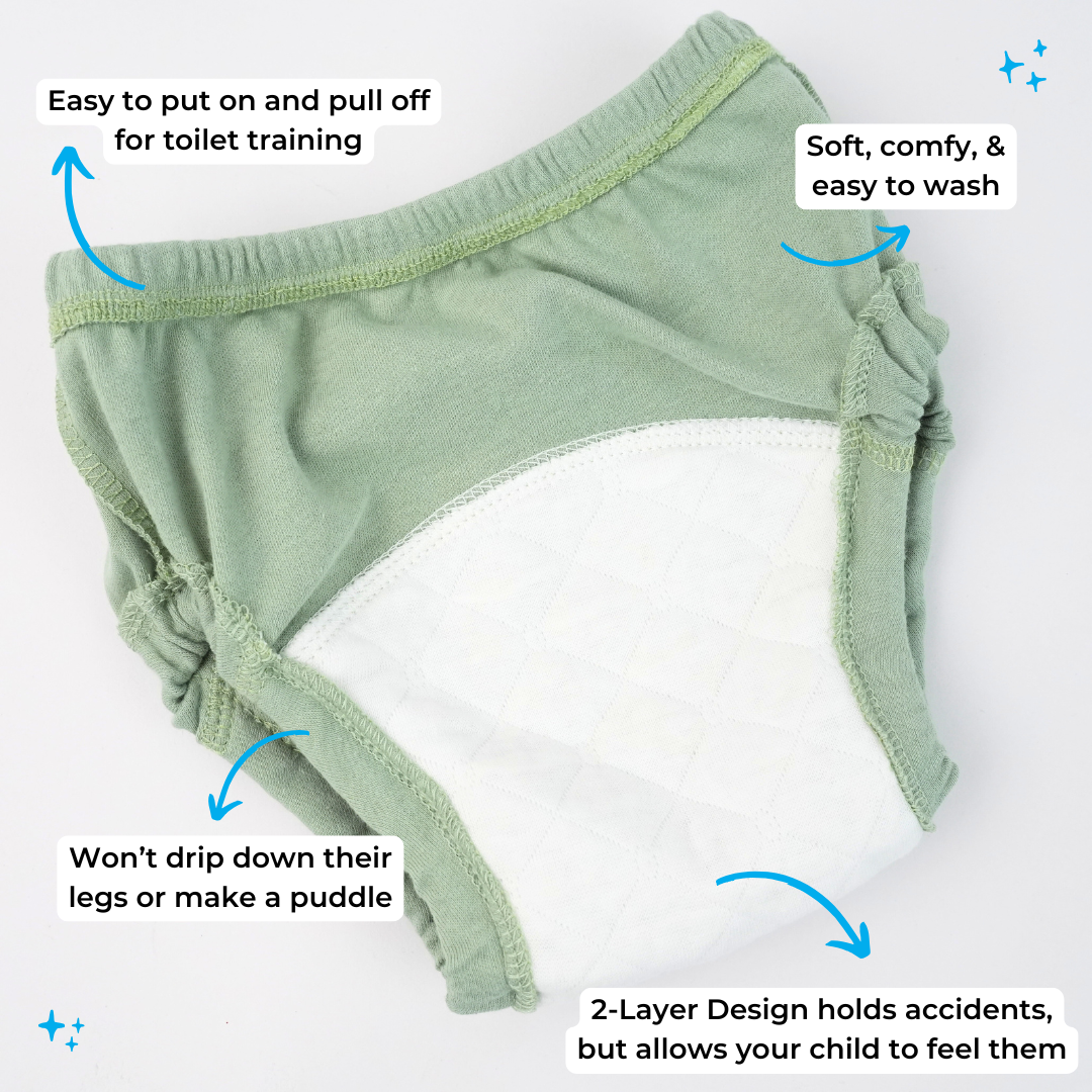 Explore the soft, comfortable materials and adorable prints your child will love wearing as they learn. Find the perfect fit for your growing toddler with the handy sizing chart. And read real-life testimonials from other gentle parenting moms who are successfully ditching diapers without compromising their values.
